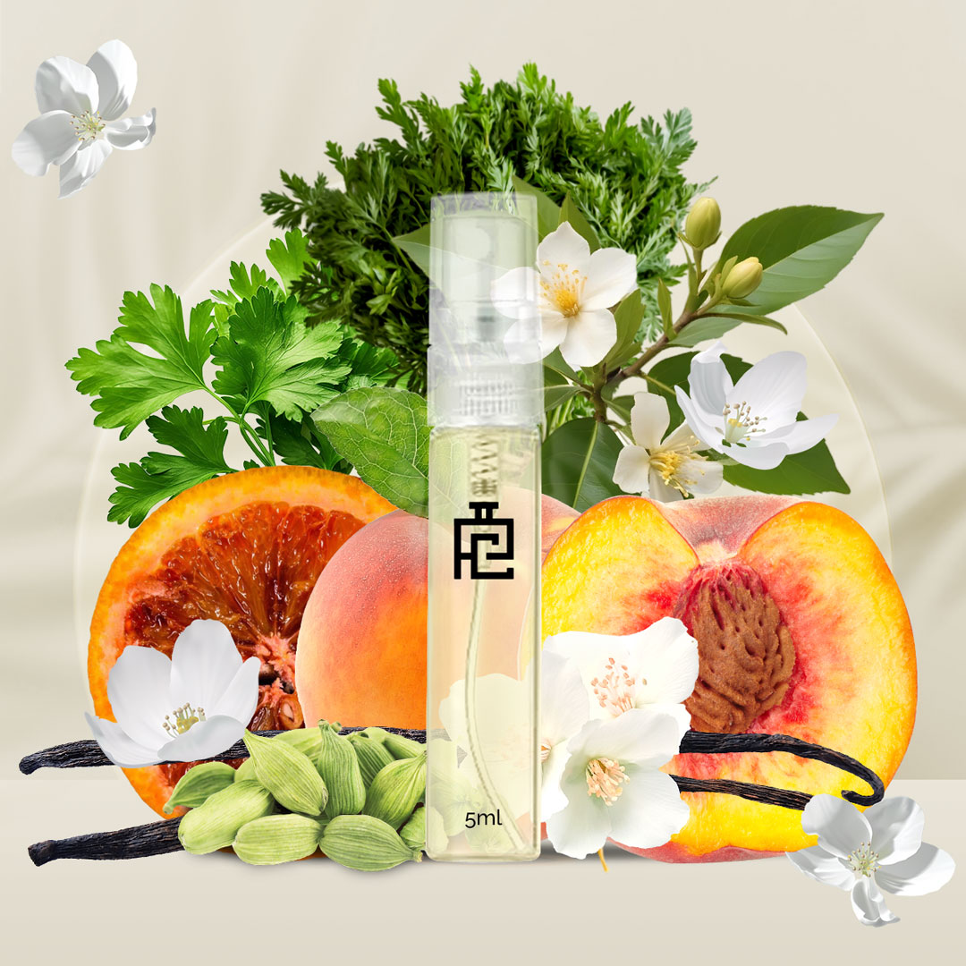 Top Notes: Blood Orange, Coriander Leaf, Cardamom, Peach, Jasmine.